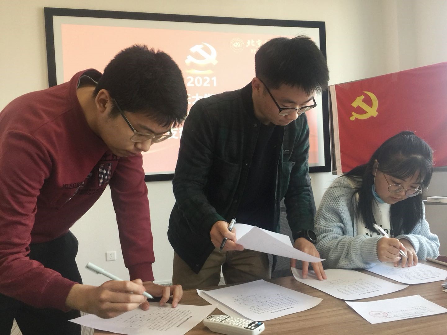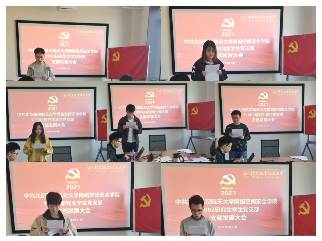 2021年3月31日上午10时,北航pg游戏电子模拟器Y1902学生党支部在一号馆408会议室召开支部党员发展大会,讨论能否接收曹银浩、韩祎然、刘翔宇、魏晨光、吴礼金、张伟豪、王庆麟7名同志为中共预备党员。本次大会由党支部书记陈晨主持,党建特邀组织员邓彦敏老师、专职组织员王倩云老师、专职辅导员杜逸雯老师列席本次会议。支部党员应到5人,实到5人。
