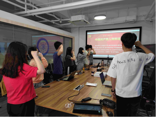 在重温入党誓词环节,高丰奕同志作为pg游戏电子模拟器本科生第二党支部分会场领誓人,带领各位党员同志再次庄严向党宣誓。