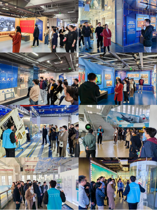 随后,各党支部成员共同参观了航空航天博物馆。这里集中展示了中国航空航天事业的发展历程和成果,包括大量珍贵的飞行器、模型、实物等。在博物馆的展厅中,大家在讲解员的带领下学习了机身、机翼、起落架、发动机的相关知识,同时,我院学生党员们也结合自身学习经历,向牡丹集团一行分享自己对祖国航空航天事业发展的见解。一行人欣赏着馆藏的各大著名飞机实物,仿佛穿越时空,体悟人类搏击长空的伟大梦想。在航空航天的漫长征程中,我们看到了勇往直前、锐意进取的航天精神,感受到了中国航空航天事业的辉煌风采和无限潜力。