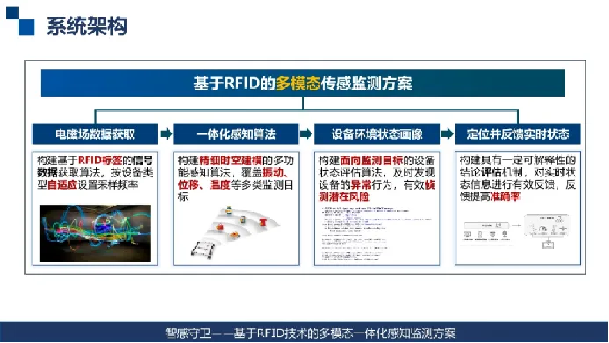 随着物联网技术的发展,智能化、安全化的无源感知技术已成为构建智能感知环境 的关键技术之一。射频识别(RFID)技术,作为无源感知的代表技术之一,具有低功耗、易安装、成本低等优势,通过软件和算法调整,可适应多种检测需求,具 备灵活性和可扩展性,能在不同监测场景下提供低成本、高效的解决方案。本作品构建了一种具场景迁移性的多功能感知算法,涵盖位移、温度、振 动等监测场景,提出了一种软件定义的多模态 RFID 感知监测方案,为灾害防治、工业物联网等领域中无线感知技术的研究和应用提供了重要的参考价值。