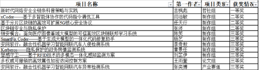 经过院校两级评审、现场答辩等环节,第三十四届冯如杯科技竞赛于2024527日落下帷幕,在本次竞赛中,网安学子取得了优秀的成绩,获得一等奖1项、二等奖3项、三等奖7项。