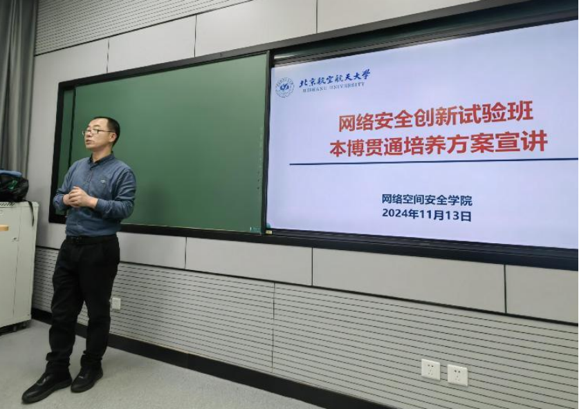 副院长伍前红老师首先向同学们阐述了班级培养目标与资源配置,让同学们深刻感受到学院对班级建设的高度重视与全力支持。伍院长详细介绍了网络空间安全专业本博毕业要求、培养模式与核心课程、分流机制等关键内容,明确同学们需要完成的课业要求及未来发展路径,鼓励同学们在创新的培养方式下增长学识、不断追求卓越。