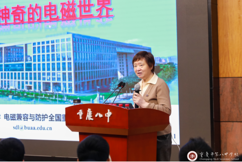 苏东林院士从“北航是一所什么样的大学”出发,向重庆八中学子描绘了北航作为新中国第一所航空航天高等学府的大气磅礴和温婉雅致,展示了北航始终传承红色基因,把服务国家作为最高追求,矢志不渝培养一流人才,打造国之重器的光辉历程。她以通俗易懂的语言,深入浅出地讲述了电磁在生活中的广泛应用,解析了神奇的电磁世界。她围绕北航的建校背景和电磁发展历程,娓娓讲述了学校培养中国第一代红色工程师的使命初心,以及北航三代电磁人始终服务国家战略需求不断“筑基、攻坚、拓新”的责任担当。