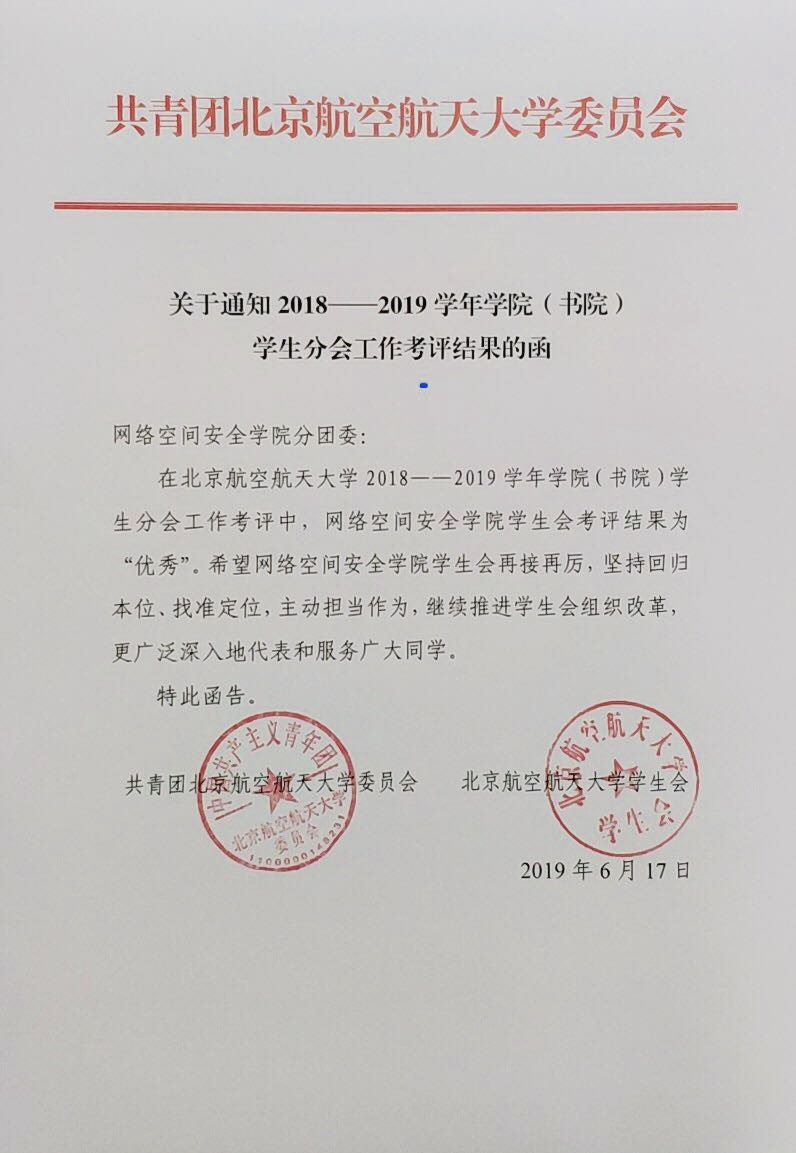 2018-2019学年,pg游戏电子模拟器学生会在学院党委和学院团委悉心指导下,以饱满的热情、积极的工作态度圆满完成工作,取得了一定的成绩,在年度学生分会工作考评中被评为“优秀”,予以表彰!