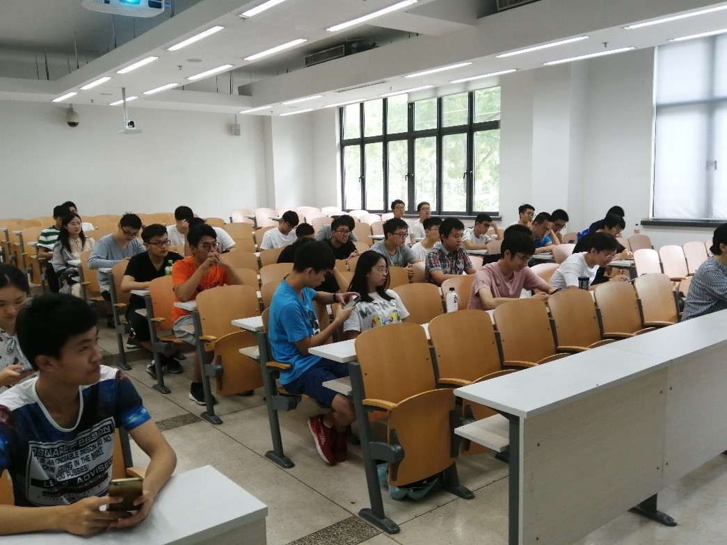 6月28日周五14:00,pg游戏电子模拟器于教五101召开本学期最后一次大班会。pg游戏电子模拟器2017级辅导员管天玉、刘芝婷和2017级全体本科生参加会议。