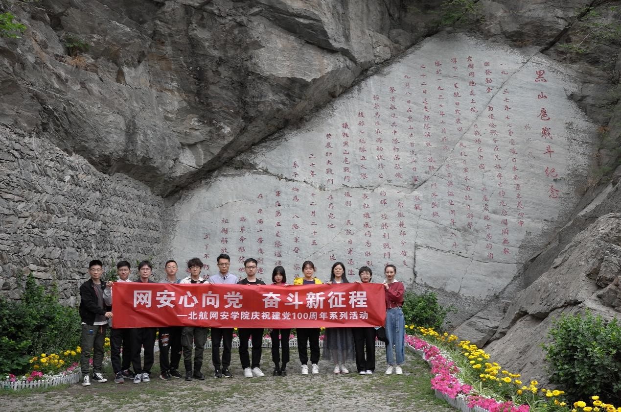 在建党百年之际,为积极响应习近平总书记开展党史学习教育的号召,继承和发扬革命先辈的红色精神,加强党员思想政治教育,2021年5月15日上午10时,北航pg游戏电子模拟器Y1901和Y1902学生党支部在百望山森林公园黑山扈战斗纪念园组织举办了庆祝建党100周年系列活动之“网安心向党 奋斗新征程”主题党日活动。学生党支部12名党员同志参与。