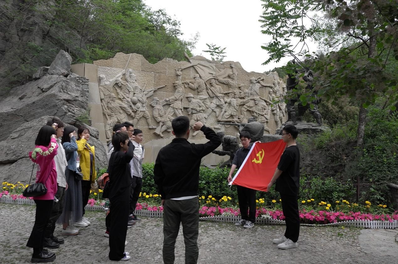 支部书记徐子钧在活动前在微信群中发布了黑山扈战斗纪念园的介绍,学生党员同志们提前进行了学习和了解。同志们一路步行来到了位于百望山森林公园的黑山扈战斗纪念园,进行了黑山扈战斗史实学习、重温入党誓词、交流分享等活动。